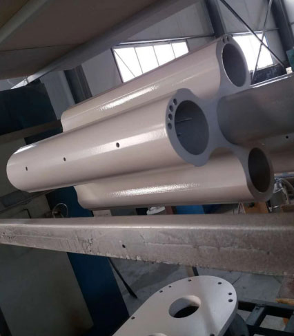 一、對經常需要拆裝的進、出料管口,應在進、出管口上增加一個搪玻璃的短管,短管一端和四氟防腐設備管口連接,另一端和管道連接,這樣可避免經常拆裝管道損壞四氟噴涂設備管口。