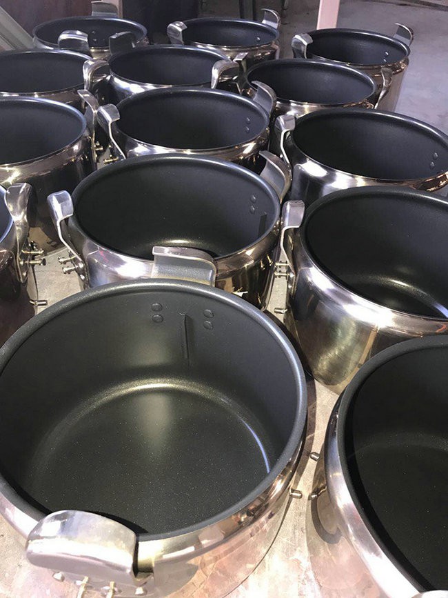 對于新模具,模具加工組裝后型腔內(nèi)有大量的防銹油脂必須清洗干凈;而對于舊模具,其型腔表面有特富龍涂層也需清理干凈。由于特富龍涂層具有穩(wěn)定的化學(xué)性能,不溶解于常用溶劑。因此不采用化學(xué)清洗的方法進行處理,而采用450 C高溫烘烤4小時使油脂或特富龍涂層脫脂老化。
